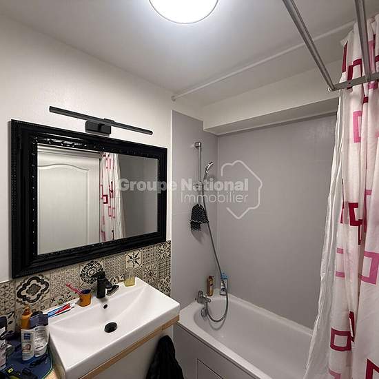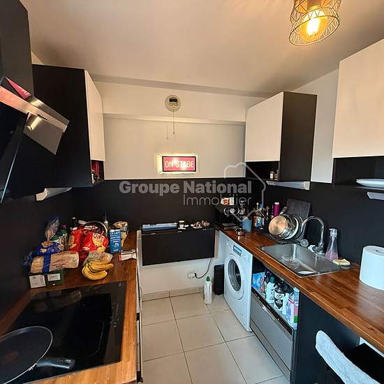 Entrée avec placards, une cuisine aménagée et équipée ; un salon - salle à manger ; une chambre. Dégagement vers une salle de bains (baignoire) et un WC. Chauffage électrique. Une place de parking. LOYER 750 EUROS + 50 EUROS DE CHARGES