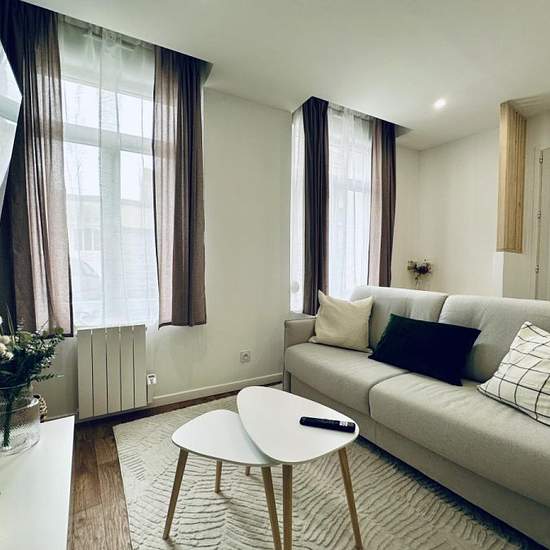 LOUE F2 meubl? au c?ur du centre ville. Loue CAMBRAI - F2 meubl?, rue des juifs, en parfait ?tat, comprenant : - s?jour, cuisine ?quip?e, une chambre et salle d'eau avec W.C. CHARGES = chauffage + eau froide + ?lectricit? + taxe OM + communs LIBRE DE SUITE