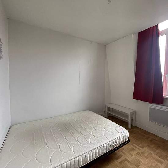 Cambrai Centre-ville Appartement T2 meublé au 3ème étage sans ascenseur Comprenant pièce de vie avec kitchenette, 1 chambre, salle de bain, wc Chauffage électrique, compteurs individuels Garantie visale exigée Vivien Baivier rsac Lille 4