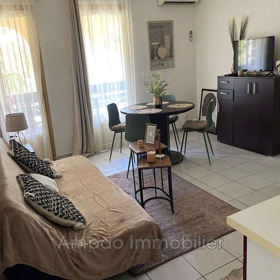 LOCATION SAISONNIÈRE - MEUBLÉE - Disponible du 01 / 09 / 25 au 30 / 06 / 26 Appartement meublé de 32 m² situé au rez-de-chaussé d'une résidence calme et sécurisée, sur les hauteurs de Canet en Roussillon, à 10 minutes de Perpignan. Ce très coquet T2 est composé d'une cuisine équipée avec micro-onde, réfrigérateur, plaques de cuisson, four, lave vaisselle, lave linge, vaisselle, etc., ouverte sur un agréable salon séjour avec canapé lit, TV écran plat, d'une chambre avec placard, une salle d'eau avec WC séparés, ainsi qu'une très agréable ter...