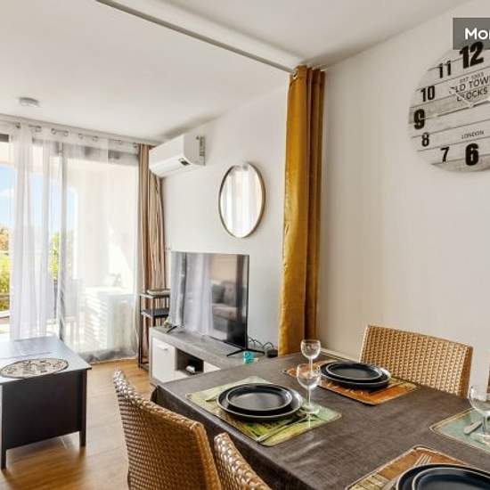 Located in a tree-lined residential area, this flat offers you a comfortable environment in which to stay in Cannes. This attractive 27 m² flat is located on the ground floor of a residence and offers : - a 10 m² terrace, - a living room with sofa bed - a fully-equipped kitchen (coffee machine, toaster, microwave, hob, fridge, dishwasher), - bedroom with double bed - bathroom with bath, separate WC, - hoover, - air conditioning, - TV and Wi-Fi. You will have access to the residence's swimming pool, open from April to the All Saints' Day holi...