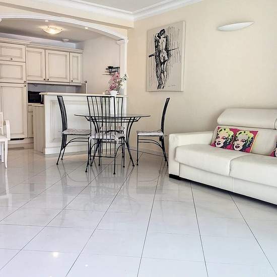 Cannes, Quartier Oxford, au calme, dans belle copropriété récente sécurisée et arborée, loue grand 2 pièces, très lumineux . Appartement très bien meublé comprenant hall d 'entrée avec placards, salle de bain, 1 chambre avec placards, donnant sur la terrasse, belle pièce de vie avec canapé lit convertible, cuisine ouverte équipée avec lave vaisselle , four, plaque, hotte, réfrigérateur et congélateur . Terrasse spacieuse - garage fermé en sous-sol RENOVATION SALLE DE BAIN EN COURS AVEC POSE D' UNE DOUCHE A L' ITALIENNE Expo sud , climatisati...