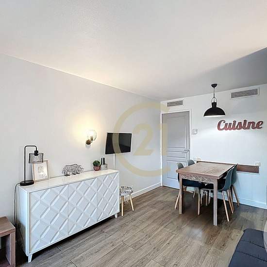 Votre agence CENTURY 21 Immobilier Conseil à Cannes La Bocca vous propose à la location ce charmant deux pièces meublé dans un style moderne, situé au sein de la résidence Cannes Beach, en plein cœur du centre-ville de Cannes La Bocca. L'appartement se compose d'une entrée avec deux placards, d'un coin nuit, d'une salle d'eau avec WC, et d'une cuisine aménagée et équipée avec lave-linge ouverte sur le séjour donnant accès à un balcon. Le logement, climatisé, bénéficie d'un confort optimal avec le chauffage, l'eau chaude et l'eau froide inclu...