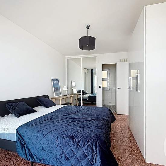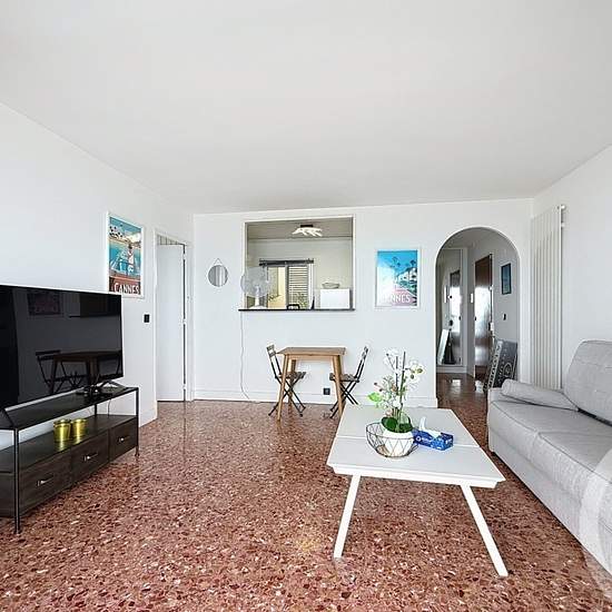 CANNES - PALM BEACH : Notre agence vous propose à la location meublée à l'année un agréable deux pièces situé dans le quartier prisé de Palm Beach, à Cannes. L'appartement se compose d'une entrée avec placard, d'un séjour lumineux avec espace salle à manger ouvrant sur une terrasse, d'une cuisine semi-ouverte, aménagée et équipée, d'une grande chambre avec rangements intégrés, d'une salle de bains, ainsi que de WC indépendants. La terrasse de 13 m2 offre une vue imprenable sur la mer et les îles de Lérins, Une place de stationnement peut éga...