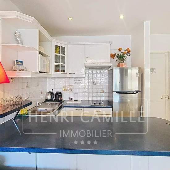 Disponible du 1er septembre au 28 février Dans le quartier emblématique de la Croisette,entre l'Hôtel Martinez et ses plages de sable, Vous serez charmé par bel appartement 1 chambre, lumineux, joliment aménagé, de 33m2 situé au 3ème étage d'une résidence de standing, sécurisée et gardiennée. Il est composé d'un séjour avec un canapé convertible et cuisine ouverte équipée, une chambre avec un lit double, une salle de bain avec WC, terrasse. Loyer mensuel 1400 € Forfait de charges 95 € ( eau, electricité, accès internet ) Dépot de garantie 1 ...