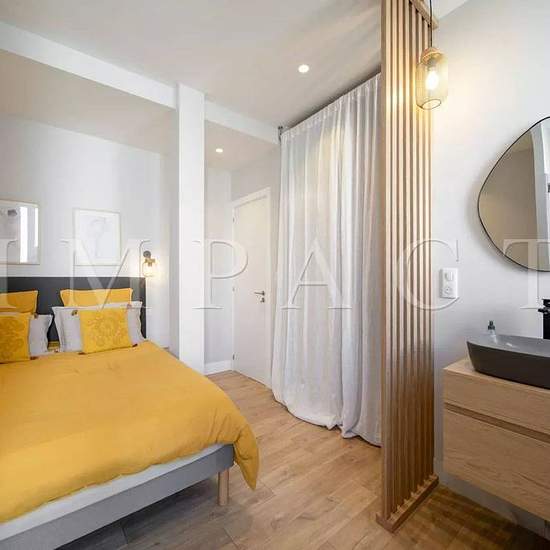 Appartement 1 chambre entièrement rénové. Superbe appartement rénové avec goût situé à 2 minutes à pied de la Croisette et de la Rue d’Antibes. L’appartement est composé comme suit : - Un grand séjour lumineux avec canapé convertible et cuisine ouverte entièrement équipée sur le séjour. - Une chambre (lit 160cm) avec salle de douche en suite. - Un toilette indépendant. - Une buanderie avec lave-linge et sèche-linge. Cet appartement est idéal pour les couples, congressistes ou personne souhaitant profiter pleinement des activités de la ville ...
