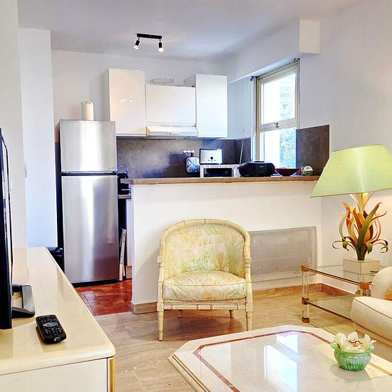 Dans une copropriété de standing au calme, proche des commodités, appartement de 2 pièces entièrement meublé. Il se compose d'une entrée, un séjour avec cuisine américaine entièrement équipée qui donne sur une terrasse de 7 m², une salle de douches avec WC, une chambre. Une place de parking et une cave complètent l'appartement.