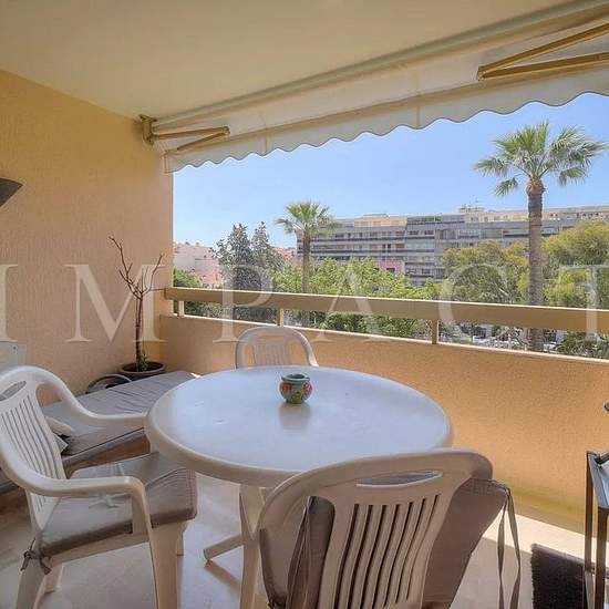 A 10 minutes à pied de la Croisette et du Palais des Congrès, dans une résidence de standing, au 4ème étage avec ascenseur, appartement spacieux offrant deux belles terrasses. Descriptif Hall d'entrée. Toilette indépendant. Lumineux séjour s'ouvrant sur une terrasse exposée sud. Table à manger équipée pour 4 personnes. Cuisine indépendante entièrement équipée avec frigo, réfrigérateur, lave-vaisselle, plaques de cuisson, machine Nespresso, grille pain. Chambre double : Lit 140 cm x 200 cm, TV, dressing s'ouvrant sur la terrasse exposée nord....