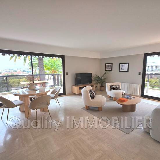 LOCATION MEUBLÉE 1 An renouvelable. Cannes Californie, Résidence Luxe Parc Montrose. au Calme, Grand 2 Pièces de 61 m² aux prestations raffinées, en excellent état au 3ème et dernier Étage, avec Belle entrée et placard, salon, salle à Manger donnant sur terrasse Sud et Autre terrasse Ouest ( en tout 30m² environ), avec vue sur le Parc, cuisine indépendante équipée, (Plaques de cuisson, Lave-Linge Lave Vaisselle Four réfrigérateur-congélateur ), Toilettes avec Lave Mains, salle de bain avec double vasque et baignoire, une Grande chambre avec ...
