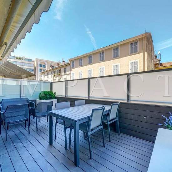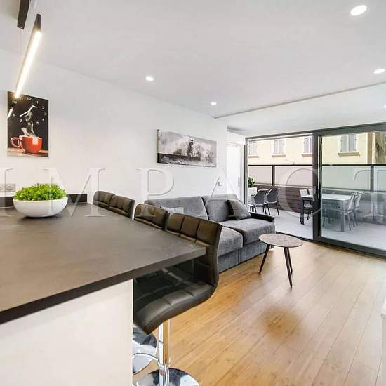 Appartement rénové d’environ 50m² dans une résidence sécurisée avec gardien 24/7, sur la Croisette côté ville. Belle terrasse de 18m²avec vue ville. Une entrée avec placard contenant le lave-linge et le lave-vaisselle. Une salle de douche pour les invités avec douche et lavabo. Une cuisine américaine entièrement équipée ouvrant sur le séjour avec un réfrigérateur, une machine à café Nespresso, des plaques à induction, un four micro-ondes et un bar avec 4 chaises. Le salon ouvre sur la terrasse exposée sud-ouest avec une télévision écran plat...