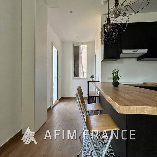 Rare, Cap d'Ail centre, Beau 2P meublé, climatisé, entièrement refait à neuf, composé d'une entrée, une belle cuisine américaine entièrement équipée, un séjour spacieux, une grande chambre avec rangements et une salle de douche avec WC. coin buanderie, Petit emplacement Parking extérieur. Eau, électricité et internet inclus dans les charges. Attention Dispo d'octobre 2025 à mars 2026.
