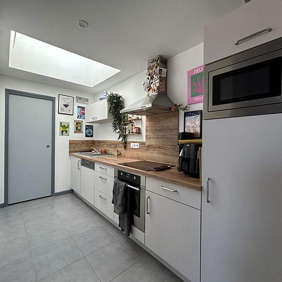 Ce logement proposé à la location se situe à Carcassonne, au 1er étage d'un immeuble à usage résidentiel. L'appartement développe une surface de 53 m² pensée pour une occupation stable et pratique. L'entrée permet un accès direct à l'espace de vie, structuré autour d'un séjour bénéficiant d'une ouverture sur une grande terrasse, utilisable comme prolongement du logement au quotidien. La cuisine, aménagée et équipée, est intégrée à l'espace principal tout en conservant une zone buanderie dédiée, facilitant l'usage des appareils et l'organisat...