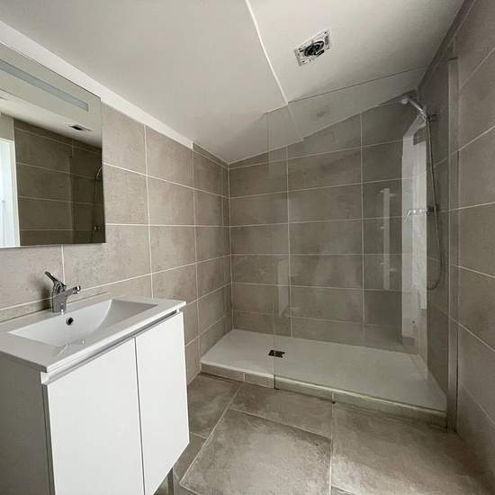 Appartement entièrement restauré, au 2e étage d'un immeuble, comprenant un séjour-cuisine spacieux avec cuisine aménagée de meubles et équipée d'une plaque de cuisson à induction, d'une hotte, d'un four encastré, une chambre lumineuse, un salle d'eau - toilettes avec douche, vasque sur meuble, miroir, wc et sèche-serviette. L'appartement est équipé d'un chauffe-eau électrique de 150 litres, d'une pompe à chaleur air-air dans le séjour-cuisine, d'un panneau rayonnant dans la chambre. Libre. Classe énergie : C Classe Climat : A Montant moyen e...