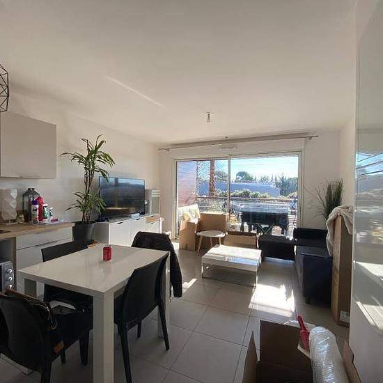 Aube Rouge - T2 récent - Castelnau, secteur Aube Rouge. Au rez-de-chaussée d'une résidence de charme, récente et sécurisée, appartement T2 de 40.20 m² composé d'un séjour avec cuisine ouverte fonctionnelle, d'une chambre avec placard, d'une salle d'eau avec douche à l'italienne, d'un WC indépendant et d'une belle terrasse de plus de 18 m² exposée Sud avec grand rangement. Proche tramway (ligne 2) et commerces. Eau froide et eau chaude incluses dans les provisions pour charges. Chauffage individuel électrique. Loué avec une place de parking p...