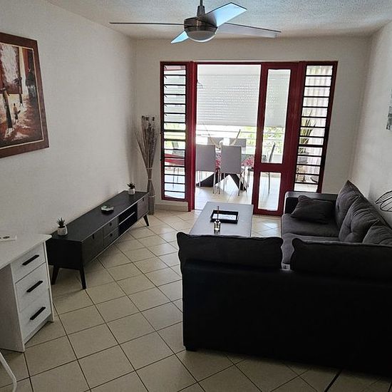 Venez découvrir ce bel appartement T2 meublé, situé au 1er étage d’une résidence sécurisée avec piscine, sur la commune de Cayenne à 5 minutes du centre ville de Cayenne et à 10 minutes du lycée Melkior. Fonctionnel et agréable à vivre, ce logement se compose d’une entrée ouvrant sur une cuisine entièrement équipée, d’un séjour lumineux, d’une chambre climatisée avec placards intégrés, ainsi que d’une salle d’eau avec WC. Côté extérieur, vous profiterez d’une terrasse aménagée, idéale pour vos moments de détente.Deux places de stationnement ...