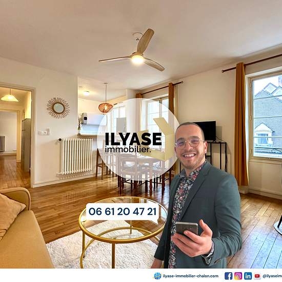 Nouveauté, en exclusivité avec Ilyase Immobilier, à 2 pas du centre-ville de Chalon-sur-Saône, idéal pour une vie à la chalonnaise. Ilyase vous propose cet appartement entièrement meublé de 51 m2, situé au 2ème étage dans une copropriété sécurisée. Appelez-moi pour venir visiter cet appartement composé de : - 1 entrée desservant : - 1 agréable pièce de vie entièrement équipée composé de son espace salon/salle-à-manger, espace bureau, espace snacking avec ilôt, - 1 cuisine équipée avec lave-vaisselle, frigo, espace cuisson et de nombreux rang...