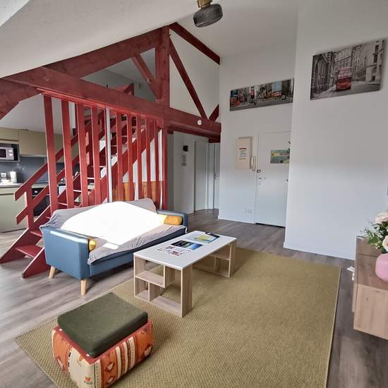 Beau T2 bis meublé (surface au sol de 67m²), idéalement situé en limite Clermont-Chamalières, proche des commerces du centre ville et des transports. Cet appartement est composé d'une entrée, d'un grand et lumineux séjour, d'une cuisine neuve entièrement équipée (frigo, plaques, four, lave-vaisselle), d'une chambre avec grand placard, d'une seconde chambre (ou bureau) en mezzanine, d'une salle de bains avec lave-linge et d'un wc séparé. Une grande cave complète ce bien. Possibilité de stationnement couvert à 800 m. Honoraires de 441 € TTC à ...