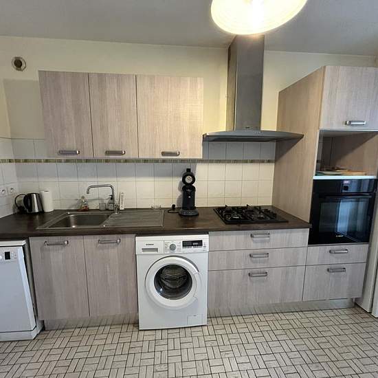 CHAMBERY - Le Clos Mérande : dans un immeuble en copropriété, au 2ème étage avec ascenseur, un appartement de type 2 meublé, de 67,82 m², composé ainsi : un hall d'entrée avec placard, un dégagement, une cuisine équipée et aménagée (plaques de cuisson gaz, four, hotte, réfrigérateur, lave vaisselle, lave linge), un séjour donnant sur grand balcon, une chambre avec placard, une salle de bains et un WC séparé. L'appartement est loué avec un garage en sous-sol. Le chauffage et l'eau chaude sont collectifs (inclus dans les charges). Les informat...