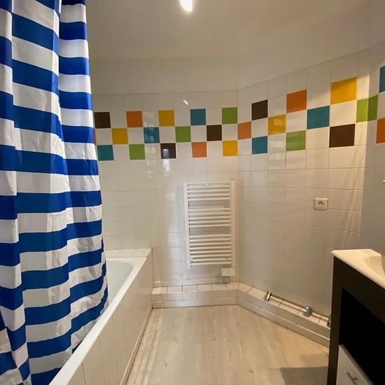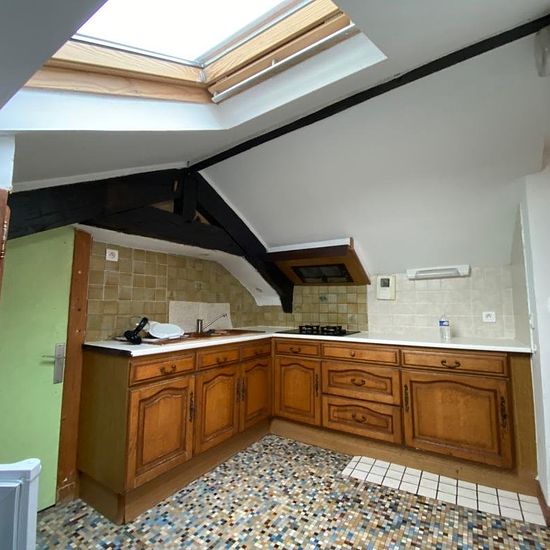 Appartement situé en centre-ville, au 3ème étage, comprenant : une entrée avec wc séparés, un séjour avec placard, une cuisine séparée aménagée et équipée (plaques, hotte et frigo top), un débarras, une chambre avec placards et une salle de bains. Chauffage électrique. Fenêtres PVC double vitrage et velux bois double vitrage. CHARGES = TOM + COPRO « Les informations sur les risques auxquels ce bien est exposé sont disponibles sur le site Géorisques : ».