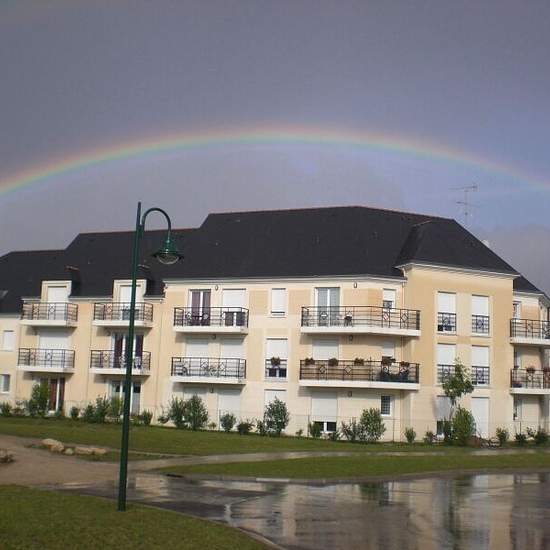 CHECY - Appartement F2 de 47m² composé d'une entrée, cuisine ouverte sur séjour avec balcon, chambre avec placard donnant sur le balcon, salle de bains avec toilettes. Cellier et place de parking extérieure.