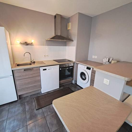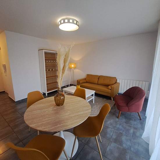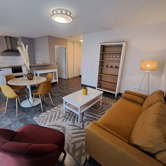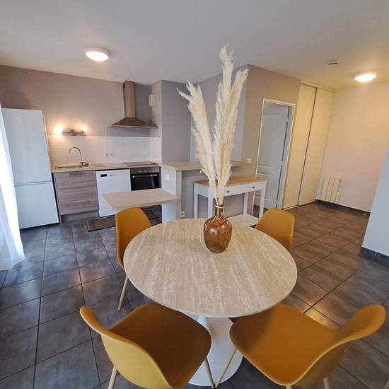Au sein d'une résidence récente avec ascenseur, agréable T2 joliment meublé, situé rue Marivaux, à proximité des facultés et des transports en commun, dans un environnement arboré et très calme donnant sur un parc. Cet appartement se compose d'une entrée avec placard, d'une spacieuse et lumineuse pièce de vie avec terrasse privative, d'une cuisine ouverte aménagée et équipée (frigo combiné, plaque, four, lave-vaisselle, lave-linge), d'une chambre avec placard, d'un cellier, d'une salle d'eau et d'un WC séparé. Ce bien possède également une p...