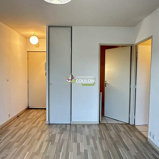 CHARMANT Mini T2 situé face au pôle tertiaire dans un bel immeuble de standing. Appartement en très bon état avec un coin chambre séparé, séjour avec kitchenette équipée et penderie, très beau parquet gris, balcon, garage, 480?HC.