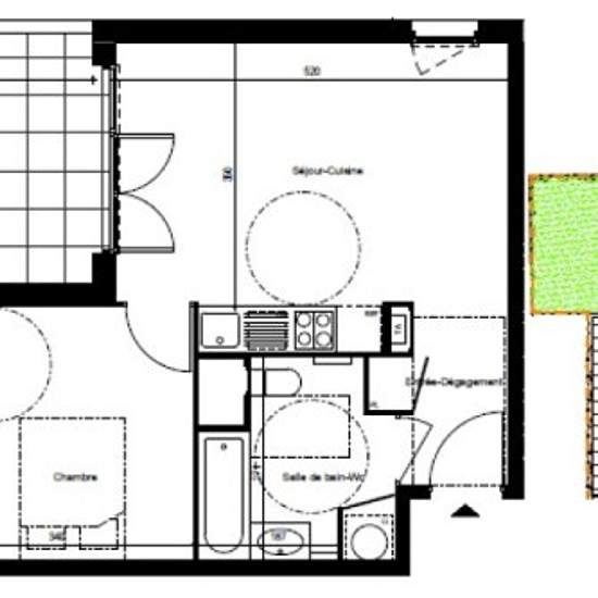 C002 Le Clusoé - SUPERBE TERRASSE ET JARDIN PRIVARIF DE 83 M² POUR CE BEAU T2 CALME DE 40 M² SITUE DANS RESIDENCE RECENTE BBC DE STANDING. L'appartement est composé d'un séjour avec cuisine US (meubles haut et bas, hotte, plaque de cuisson et four) donnant sur terrasse, une chambre avec parquet au sol avec un accès à la terrasse, une salle de bain aménagée avec meuble sous vasque et sèche serviette. Garage fermé en sous-sol et une place de parking. Visiophone. Consommation d'énergie totale entre 685EUR et 937EUR par an (prix moyens des énerg...