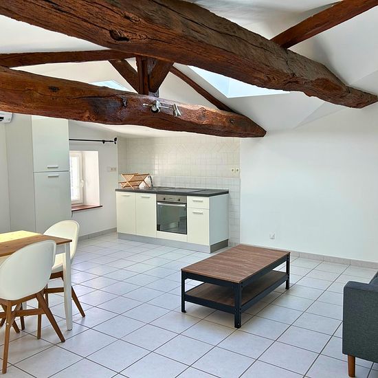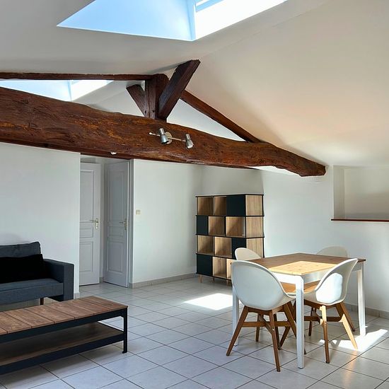 À Cognac, à proximité immédiate de la place François 1er, découvrez cet appartement non meublé proposé à la location par BOISSON IMMOBILIER. Situé au dernier étage d'un immeuble ancien édifié en 1880, ce logement d'environ 42 m2 offre un cadre de vie agréable au coeur de la ville. Il se compose d'un vaste séjour de 30 m2 avec espace cuisine, d'une chambre ainsi que d'une salle de bain. Le double vitrage assure confort et tranquillité au quotidien. Implanté au 2ème et dernier niveau, l'appartement bénéficie d'un environnement calme tout en re...