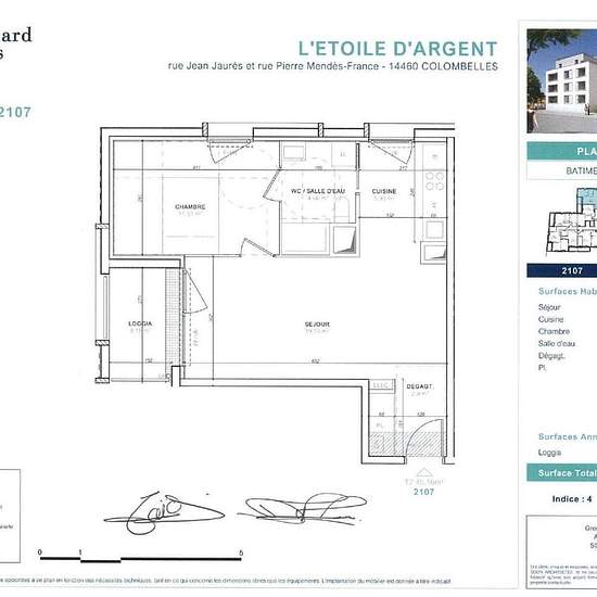 APPARTEMENT T2 de 45.16 m² - NEUF - COLOMBELLES Il est situé dans un immeuble avec ascenseur comprenant une entrée avec placard, un séjour avec cuisine, une chambre et une salle d'eau avec WC. L'appartement est équipé d'un chauffage individuel fonctionnant au gaz. De l'espace complémentaire est apporté par une loggia. Tout est prévu pour votre véhicule : parmi les emplacements disponibles dans l'immeuble, une place de parking est réservée pour cet appartement. LIVRAISON PREVU LE 07/02 (les photos de l'annonce corresponde à la pré livraison, ...