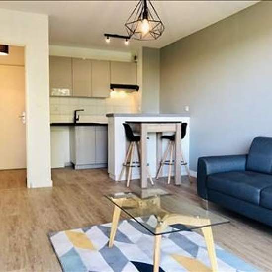 LOCATION MEUBLEE - Quartier Lycée International, proche de la gare du lycée à 400 mètres à pied, à 280 mètres à pied de la ligne de bus L2 arrêt 'Morbihan' et à proximité des commerces et services. Au sein d'une résidence sécurisée avec piscine, situé au 3ème et dernier étage, agréable appartement T2 en excellent état, exposé sud/ouest, comprenant : une entrée avec placard, une pièce de vie donnant sur le balcon, une cuisine ouverte aménagée et équipée, une chambre avec placard agencé, une salle d'eau, un wc séparé et une place de parking aé...