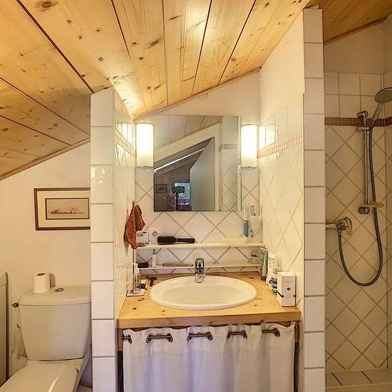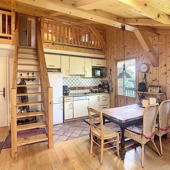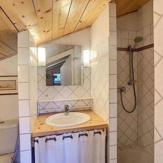 Situé à 3,5 Km du centre, au pied des pistes de skis DEUX PIECES MEZZANINE DE 30m2 + 20m2 en sous-pente (-1,75m) composé de : Une entrée, salle de douche avec WC (Lave-linge), séjour-cuisine équipée (four, frigo-congèle, 4 plaques vitro, LV…) avec balcon, d’une mezzanine avec un lit 2 personnes (140cm) et d’une chambre avec 2 lits simple (80cm). Une place de parking intérieur. - A régler lors de votre arrivée : Taxe de séjour et caution logement par carte bancaire uniquement. Services en option à prévoir avant l’arrivée (la semaine précédent...