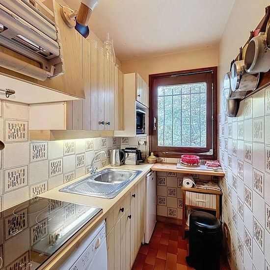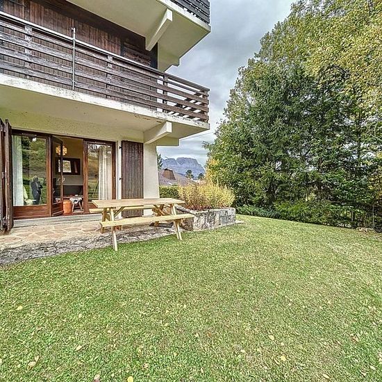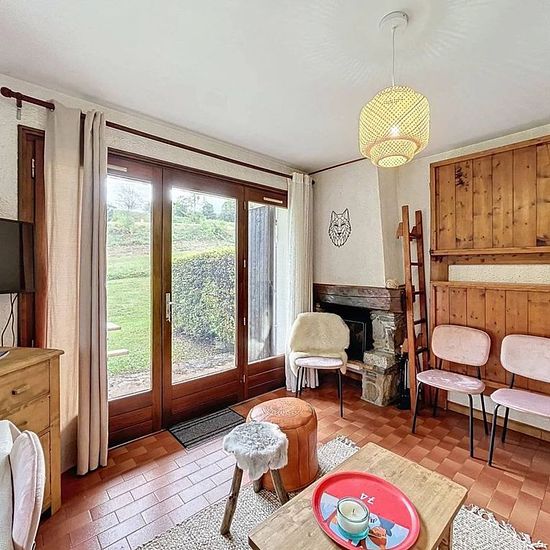 Appartement 2 pièces, il se compose d’une entrée avec placard, un wc avec lave main, une chambre avec un lit de 140 et placard, une salle de bain avec lave-linge et sèche-serviette, une cuisine équipée (plaque vitro 4 feux, lave-vaisselle, frigo-freezer, four, bouilloire, grille-pain, Nespresso, cafetière, appareille à raclette, gril, gaufrier), un séjour en RDJ avec un canapé lit (140) et 2 lits rabattables de 90, une grande terrasse avec jardin exposée Est. Annexes : Un casier à skis. - A régler lors de votre arrivée : Taxe de séjour et ca...