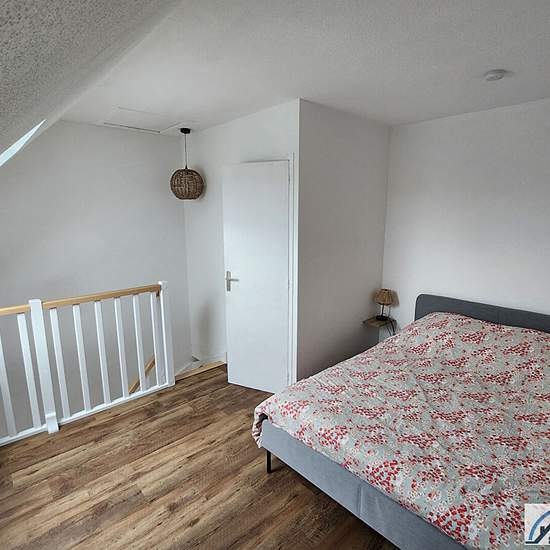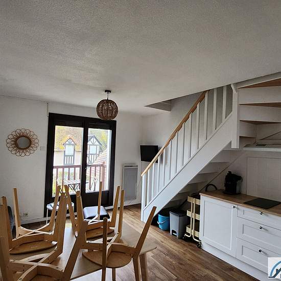 COURSEULLES SUR MER - RESIDENCE LES MANOIRS NORMANDS 1 Appartement duplex meublé de deux pièces principales situé au 1er étage, comprenant séjour avec coin cuisine aménagé et équipé ainsi que machine à laver, balcon exposé Ouest, wc, placard; à l'étage, chambre en mezzanine, salle d'eau. Libre à partir du 11/12/2025, à visiter ! GLI Propriétaire Copropriété de 175 lots - dont 77 lots habitation.