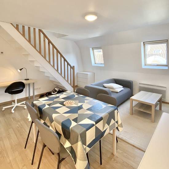 Situé au cœur de Croix, à quelques pas du métro Croix-Centre et de toutes les commodités du centre-ville, ce T2 en duplex entièrement meublé allie confort et praticité. Installé au 2ᵉ et dernier étage d’une petite copropriété calme et parfaitement entretenue, rue de la Pannerie, il offre un cadre de vie agréable et lumineux. L’appartement se compose de : - Une pièce de vie baignée de lumière - Une cuisine ouverte, entièrement équipée et fonctionnelle - Une salle d’eau moderne - Un vaste espace nuit en duplex, offrant charme et volume Idéal p...