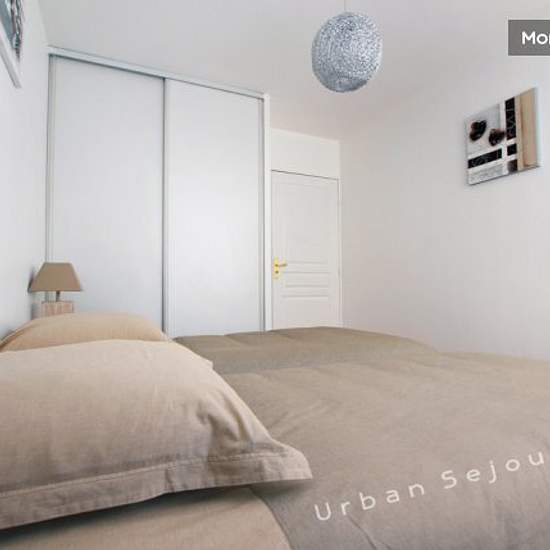 Furnished flat of 50 m² with 1 bedroom and garage, classified 3 stars according to the standards of the Ministry of Tourism Living room : sofa bed (135*195), table and chairs Equipped kitchen separated from the living room by a bar Bedroom: 2 single beds (90*200) Bathroom : bathtub with shower screen, washbasin. Toilets. Equipment : washing machine, dishwasher, LCD TV (French and foreign channels), DVD player, Internet connection Located on the 3rd floor with lift. Closed box 200 metres from the T3 tram stop Décines Grand Large (15 minutes t...