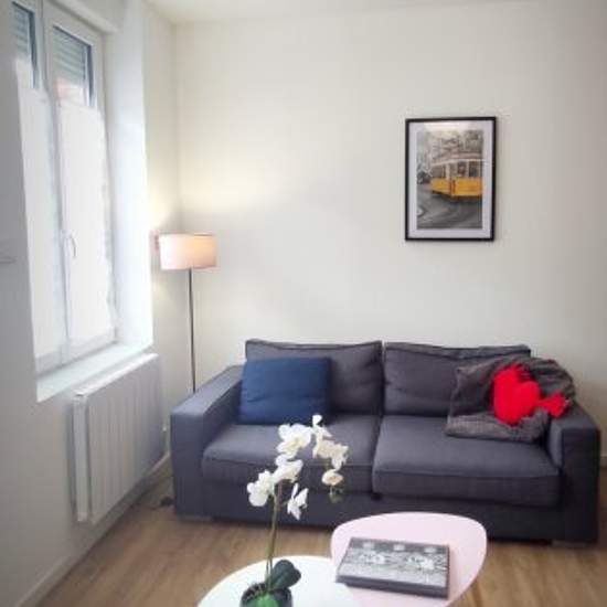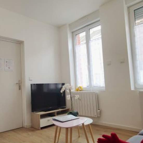 The flat is located in rue Rémy Duquesnoy, close to the hospital and the tram to Valenciennes. Parking spaces are available on the street if you have a car. The building is quiet and the common areas are equipped with a video surveillance system. For your comfort, the flat is equipped and furnished. Virtual visit on request It has one bedroom with a 140x190 bed and a sofa bed in the living room. The kitchen and living room are fully equipped: Toaster, kettle, oven, 4-burner cooker, extractor fan, microwave, coffee maker, hoover, fridge with ...