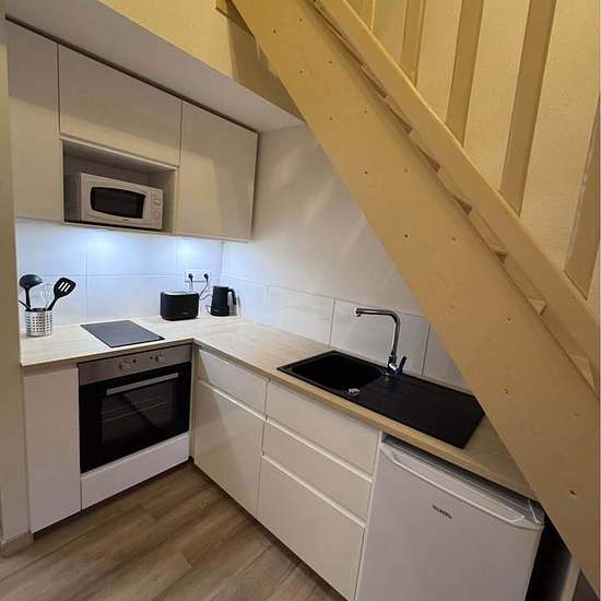 Duplex T1 bis refait à neuf et tout équipé ! Vous n’avez qu’à poser vos valises. L’appartement est composé d’un espace salon avec télévision, d’une cuisine toute équipée, d’une salle de bain avec machine à laver et la chambre en mezzanine a son lit double avec dressing. Dans le cadre de la rénovation, les radiateurs installés sont à base consommation. Appartement fonctionnel, décoré pour que vous vous sentiez au mieux, il n’attend que vous …: Les animaux et personnes fumeuses ne sont pas autorisées. Loyer: 730€ et 50€ de charges hors électri...