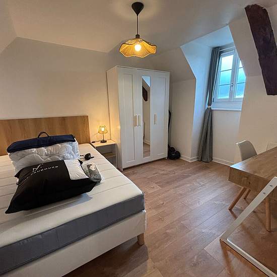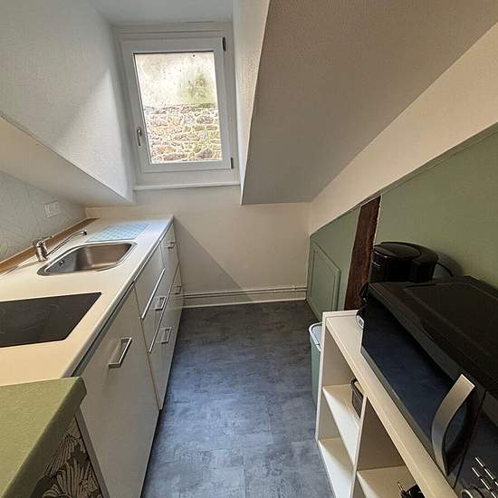 Proche du château et avec une belle vue dégagée, au troisième étage d'un immeuble construit en pierre, à louer appartement de type II meublé, d'une superficie de 37,30 m², comprenant: un séjour exposé ouest avec une cuisine équipée et aménagée, une chambre et une salle d'eau/wc. Belles prestations.
