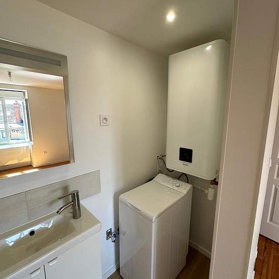 Très agréable appartement lumineux type F2 de 35,80 m², entièrement refait à neuf. Séjour/cuisine équipée (plaque induction 2 feux, four, micro-onde, réfrigérateur), chambre avec placard/penderie, salle d'eau équipée d'une machine à laver. Chauffage électrique individuel.