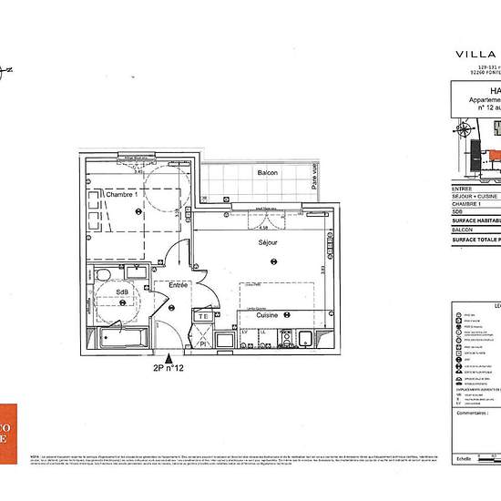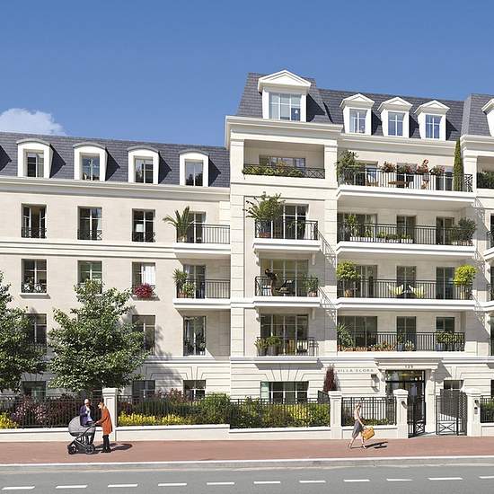 "Villa Elora"- immeuble neuf jamais habité, rue Boucicaut, centre ville, RER et TRAM à proximité, au 1er étage avec ascenseur donnant sur jardins, appartement composé d'une entrée, séjour avec cuisine ouverte aménagée et équipée, salle de bains wc, chambre, balcon, chauffage et eau chaude collectifs
