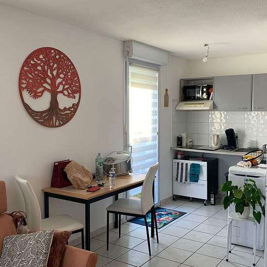 Appartement À Louer. Générac, sis 1 Impasse du Cigalou au sein d'une résidence avec piscine, appartement de type 2 en rdc comprenant une pièce à vivre avec kitchenette, une salle de bain avec wc, une chambre avec placard. Place de parking et terrasse. Loyer 640€ c.c Libre au 26/02/2026
