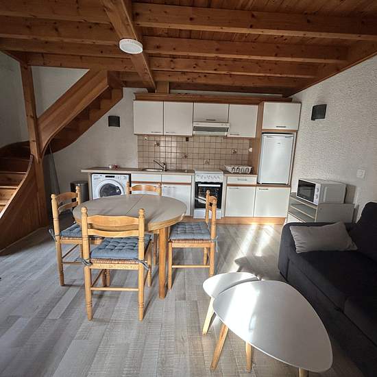 A louer, agréable appartement meublé en duplex situé au 1er étage d'une maison de ville divisée en deux lots. Il se compose : Au premier niveau : d'une cuisine aménagée et équipée ouverte sur le séjour. A l'étage : d'une chambre avec placard intégré, d'uen salle de bain avec 1 WC. Vous profiterez également d'un balcon qui vous sera privatif ainsi que d'une cave partagée avec un autre locataire. L'appartement se situe dans un secteur calme et proche de l'ensemble des commerce et des commodités. Loyer : 500EUR/mois Charges : 20EUR/mois Dépot d...