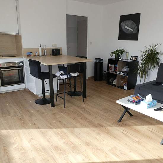A louer à Gévezé, un appartement T2 de 43m², au dernier étage, comprenant une entrée avec placards, un séjour avec cuisine ouverte aménagée et équipée (évier, hotte, plaques, four), une chambre, une salle de bains et un WC séparé. Grand balcon avec accès par le salon et par la chambre. Box fermé et place de parking extérieure. Libre le 09/02/2026. Classe énergie : C. Loyer/mois : 660 euros. Charges : 35 euros/mois. Soit un loyer de 695 euros charges comprises. Dépôt de garantie : 660 euros. Honoraires d'agence : 475 euros. Les informations s...