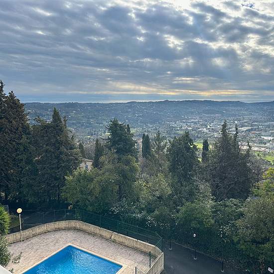 Votre agence Feliz Immo 4% vous propose à la location sur Grasse - secteur Sécurité Sociale Riou Blanquet - dans une résidence sécurisée avec piscine, ce grand 2 pièces meublé avec une jolie vue dégagée sur la mer. Il est composé d'une entrée, d'un séjour/salle à manger, une cuisine indépendante aménagée, une chambre, une salle de bains, un WC séparé. Vous bénéficierez d'un grand balcon avec une vue à 180° ainsi qu'un grand garage en sous sol pouvant accueillir voiture et scooter. Coup de coeur!
