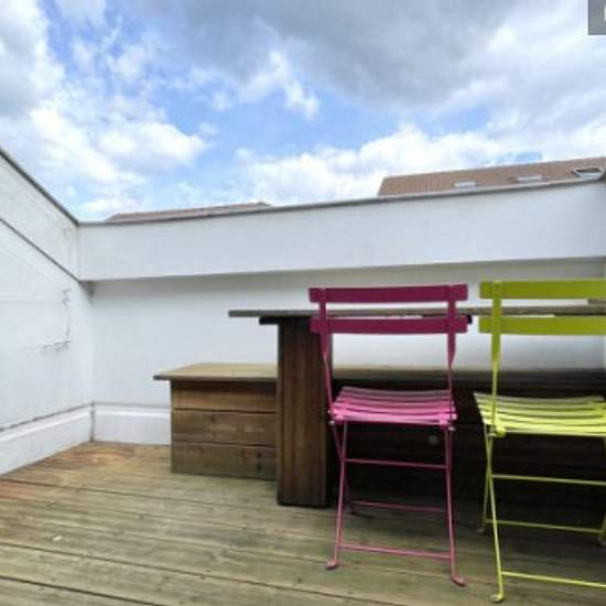 Découvrez duplex atypique de 52m² situé rue du Revol à Grenoble. --------------------------------------------------------------------------------------------------------------------------- ** Votre logement :** Ce beau duplex en centre ville situé au 3ème étage sans ascenseur se compose : - d'un pièce de vie avec terrasse aménagée type "tropézienne", - d'une cuisine ouverte toute équipée avec balcon, - à l'étage, 2 chambres en enfilade avec rangements, - d'une salle d'eau, - de WC indépendants. L'appartement dispose de deux espaces de coucha...