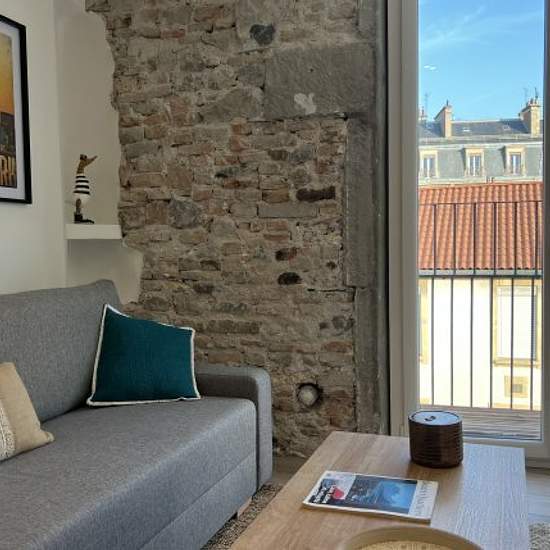 Discover our charming 33m² flat in the centre of Grenoble, which was completely refurbished at the end of 2022. This flat, fully renovated and tastefully decorated by our team, is on the 4th floor without a lift and comprises : - a very bright living room , - a fully-equipped kitchen opening onto the living room, - a beautiful bedroom with a 160 cm bed - a shower room with walk-in shower and WC. - a small balcony The flat has two sleeping areas: a beautiful bedroom with a double bed, and a sofa bed in the living room. Rent in comfort thanks ...