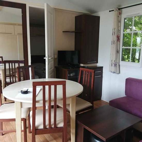 2 chambres, 6 couchages, cuisine aménagée, vaisselle, four, micro-ondes, frigo, congélateur, lave-linge, beaucoup de rangements Situé sur le camping de Guenrouet 44530 au bord du canal de Nantes à Brest, ouvert d'avril à mi octobre. Dimensions 9,80 x 4m, 36,70m2. 1836 euros de charges annuelles pour la parcelle. Piscine intercommunale à côté ouverte juillet et août (gratuite pour les propriétaires)