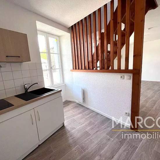 MARCON immobilier GUERET. Creuse en Limousin, Nouvelle-Aquitaine - réf 836 - GUERET centre. Votre agence MARCON Immobilier vous propose à la location cet appartement F1bis en duplex de 33 m², refait à neuf, très lumineux comprenant : salon avec cuisine aménagée et équipée. A l'étage : palier, chambre mansardée, salle d'eau et WC. Chauffage électrique. Libre le 11/04/2026. Loyer: 386.36 € dont 30 € de provision pour charges (régularisation annuelle) comprenant : eau, OM, entretien et électricité des communs. Caution : 356.36 € Honoraires char...