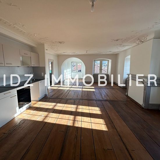 Découvrez ce magnifique appartement T2 de 76 m², situé au 1er étage du prestigieux Château d’Eptingen à Hagenthal-le-Bas, dans un cadre exceptionnel et plein de charme. Le logement a été entièrement rénové avec soin, alliant le cachet de l’ancien au confort moderne. L’entrée s’ouvre sur un hall avec espace de rangement. Vous trouverez ensuite un WC séparé, suivi d’une salle d’eau moderne équipée d’une douche à l’italienne et d’un lave-mains. La visite se poursuit avec une cuisine équipée comprenant un four, des plaques de cuisson, une hotte,...