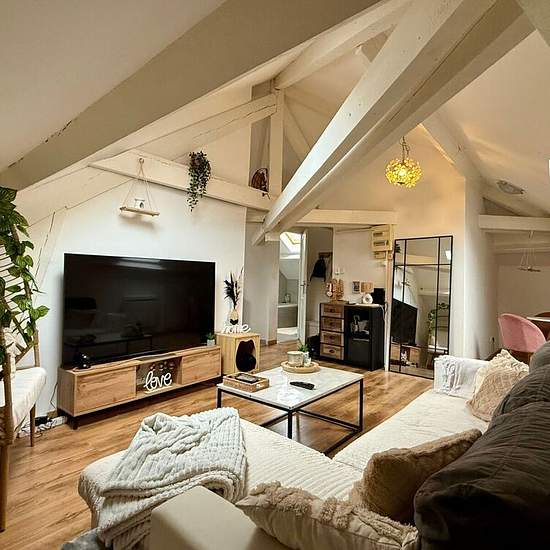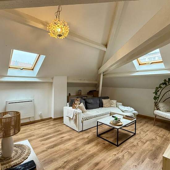 Appartement Hayange 2 pièce(s) 55 m2. HAYANGE : Charmant Appartement F2 au 3ème et dernier étage (sans ascenseur) avec poutres apparentes, (53.51 m² au sol), très lumineux, composé d'un espace cuisine équipée, un séjour, 1 pièce-coin nuit, une salle de bain équipée / WC, espaces de rangements intégrés, DV, chauffage individuel électrique. Jardin commun. Classe énergétique : D. Disponible à compter du 15/01/2026. Loyer = 615 euros par mois charges comprises (loyer =580 euros + 35 euros de provisions charges, soumises à régularisation annuelle...